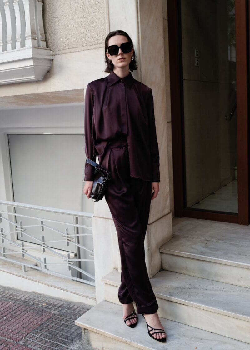 You can pair it with our Satin Bordeaux Trouser